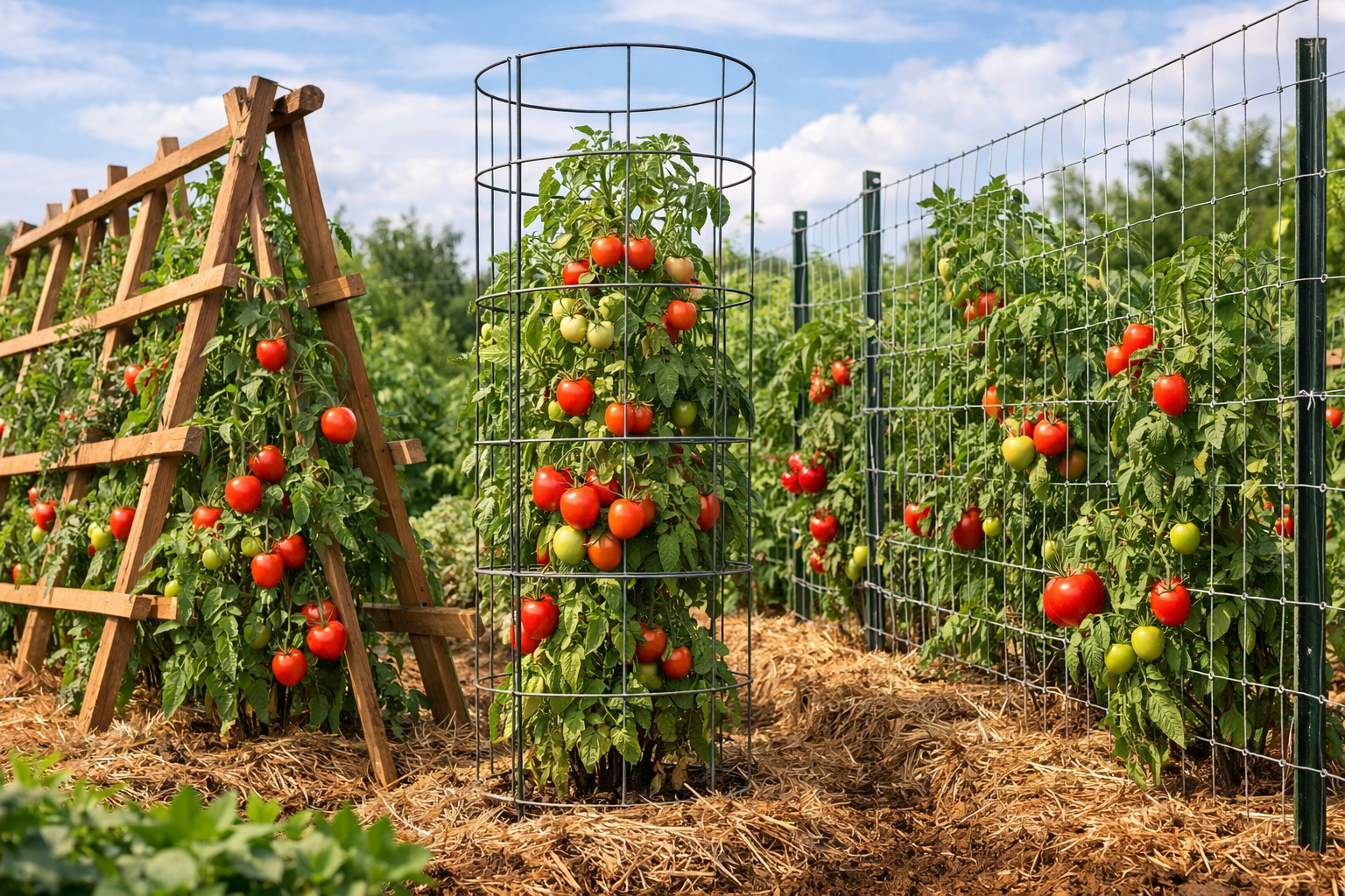 Compare the main tomato trellis options by strength, cost, pruning, and hassle