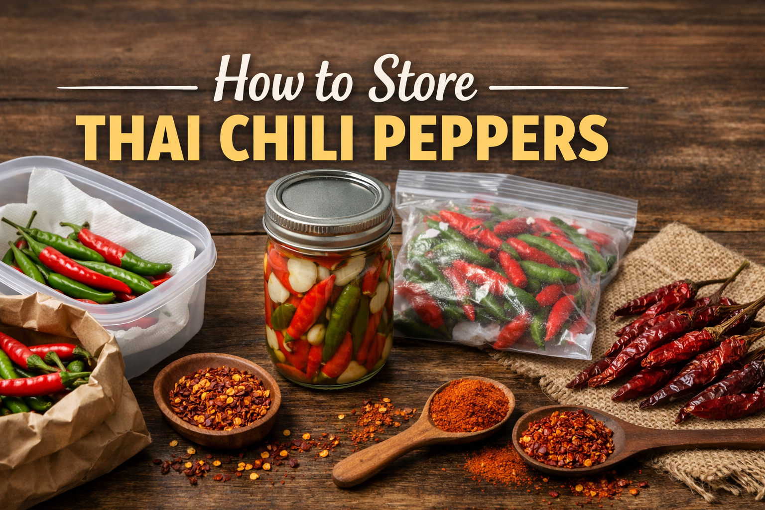 The plain answer to how to store Thai chili peppers is this: keep whole peppers dry in the fridge for the next week or two, freeze them for cooked dishes later, dry them for flakes or powder, and pickle them only when that tangy finish is actually part of the plan. That broad answer is right. It is also incomplete.